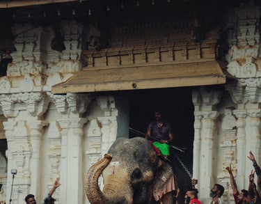 Caparisoned Elephant Processions: Over 50 majestic elephants adorned with golden ornaments, silk parasols, and floral garlands parade through the streets. Each deity idol is carried atop an elephant accompanied by traditional orchestras.